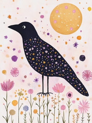 One night, under a sky full of glittering stars, a black crow landed beside the snowman. “Why do you look so sad?” asked the crow. The snowman shared his longing to see flowers. “That’s impossible,” the crow sighed. “It would take a miracle for you to survive until spring. But there is one way.”